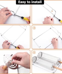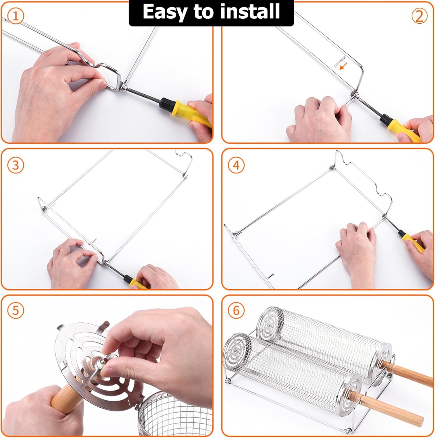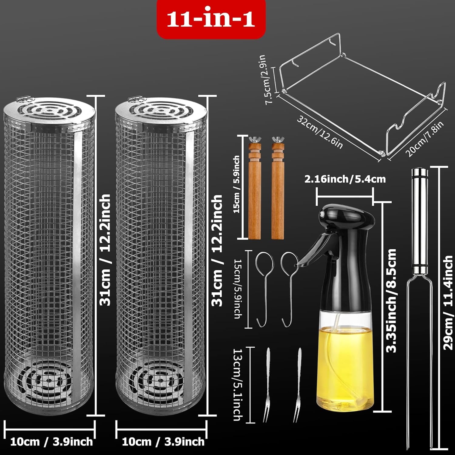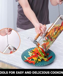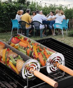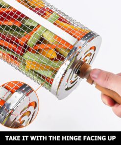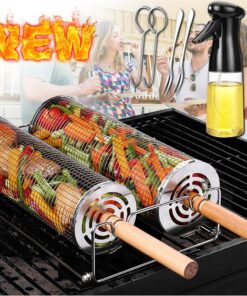 Rolling Grilling Baskets for Outdoor Grill Bbq Stainless Steel Holder Barbecue Cylinder Cage Cooking Accessories for Veggies Vegetable Camping. Birthday Gift for Men Dad Husband Him Fathers Day Papa