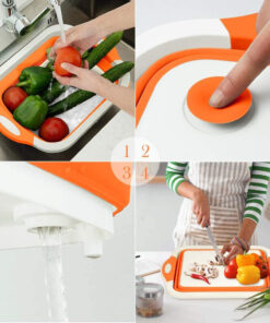 Rottogoon 3-in-1 collapsible chopping board provides a smart and convenient way to wash. chop and store vegetables and fruits. With the foldable design and unique knife slot at the bottom. this camping cutting board are convenient.
