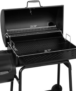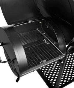 Royal Gourmet Charcoal Grill Offset Smoker (Grill + Cover) .30” L .is perfect for family use and even when having a few friends over. It is also ideal when you just want a simple or quick BBQ on the offset smoker. Main chamber of the grill retains heat very well and keeps meat more tender and juicier. which also delivers a great smoked taste. Easy to assemble. easy to use and easy to clean. If you are not a barbecue master already. this grill will make you become a seasoned griller.