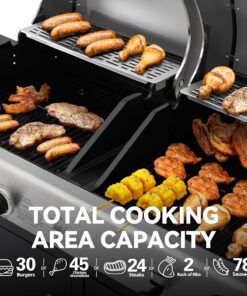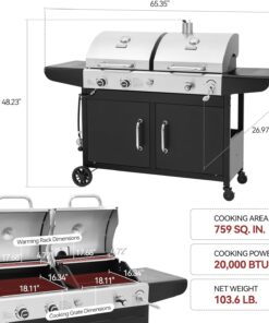 - Spacious Cooking Area: This combo grill features a generous 759 sq. in. total cooking area. including 592 sq. in. cooking grates and 167 sq. in. warming rack area. You can cook up 30 burgers at the same time.