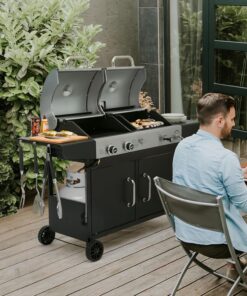 - 2-in-1 Combo Design: With the charcoal grill and 2-burner gas grill positioned side by side. this grill combines the capabilities of gas grill and charcoal grill. particularly suited for those who desire the versatility of both gas and charcoal cooking.