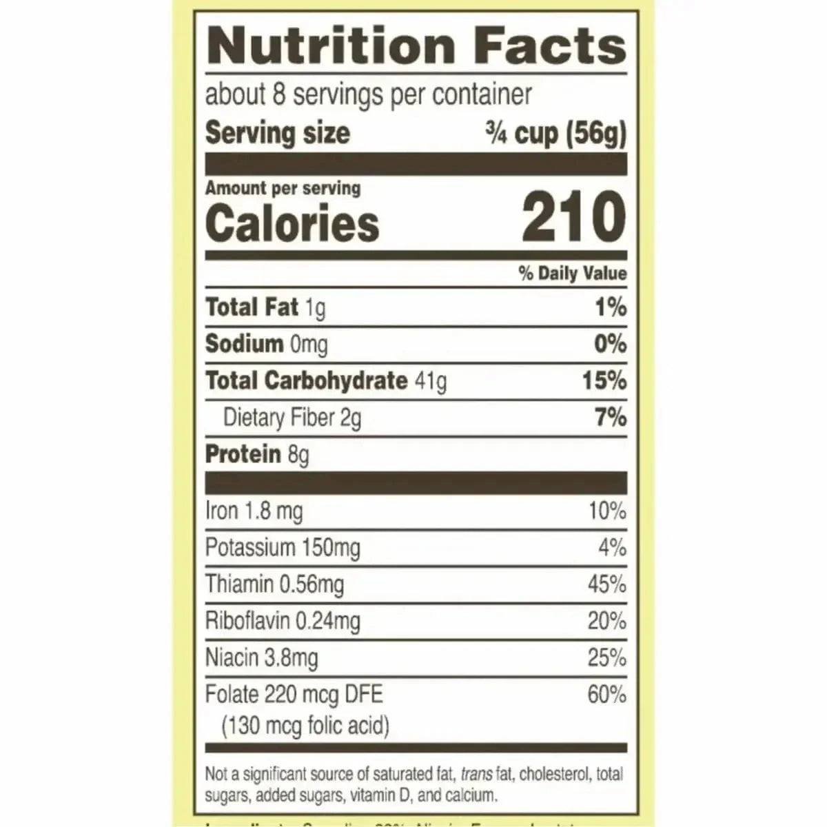Ingredients:Â Semolina 99%. niacin. ferrous lactate. thiamin mononitrate. riboflavin. folic acid