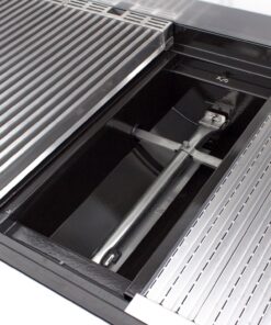 - Porcelain-coated burner boxes. firebox liners. and front-access grease tray for easy cleaning