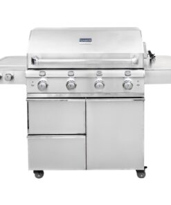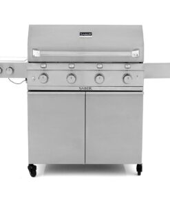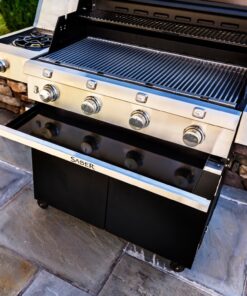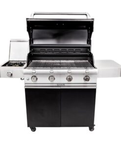 Grill with confidence and achieve professional-grade results with the SABER Deluxe Black 670 40-inch Propane Gas Grill. This grill features a patented Saber infrared cooking system that allows you to cook juicier and more flavorful meals compared to traditional gas grills. With its unique cooking grate and flame tamer design. it provides even surface temperatures and prevents flare-ups. The grill’s black enamel lid with cast aluminum end caps and fully enclosed powder-coated cart add to its durability and functionality. It also includes a 10.000 BTU side burner for preparing side dishes and sauces while grilling.