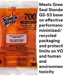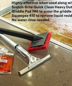 Scotch-Brite Griddle Cleaning. Quick Clean Liquid 700-40. 3.2 Oz Packet. 40/Pack. Heavy Duty. Cleans in 3-5 Minutes. for Baked on Food and Cooking Oils. Use on Hot or Cool Griddle