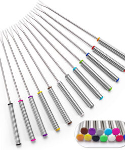 Set of 12 Stainless Steel Fondue Forks 9.5. Color Coded Cheese Fondue Forks Smores Sticks with Heat Resistant Handle for Chocolate Fountain Cheese Roast Marshmallows Dessert Fruits