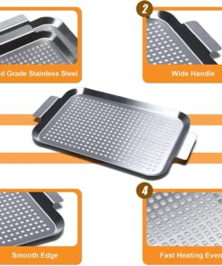 (Set of 3) Heavy Duty Vegetable Grill Baskets for Outdoor Grill. Stainless Steel Veggie Grilling Basket for All Grills. BBQ Gifts for Men. 1 Large & 2 Small