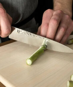- Tsuchime Finish: The hammered tsuchime finish reduces friction. allowing food to release easily during cutting.