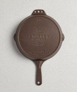 The No. 10 Skillet embodies all the classic features of a traditional Smithey skillet. including convenient pour spouts and a helper handle for easy lifting with two hands. With our signature polished interior. this skillet is not only easy to clean but also easy to maintain. As the very first skillet we manufactured at Smithey. the No. 10 holds a special place in our hearts and on your stovetop. It’s pre-seasoned and proudly made in the USA. featuring a traditional handle and handy holes on both sides for effortless hanging and storage.