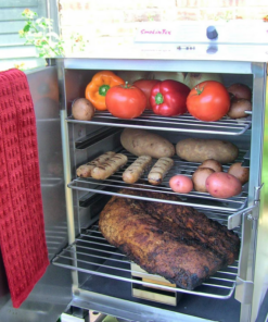 The Smokin Tex 1400 Pro Series Stainless Steel Electric Smoker is easy to use. just plug it in. put in the wood and food. shut the door. and set the temperature. Your food is slow cooked with exact temperature control from 100 to 250 degrees and will require no attention during cooking! This electric smoker features all stainless steel construction to survive the elements and double wall insulation to keep it cool to the touch. Controlled heat. combined with the no-draft cooking conditions produces a consistently moist and tender product. Smoker has five shelf positions and includes three 14 1/2 x 14 1/2 inch shelves for a maximum capacity of 38 lbs. Comes equipped with a stainless steel drip pan. four caster wheels. cookbook. and instructions. Electric smoker requires 700W/10 amps/120V. Smoker Dimensions (in inches): 17 1/2 W x 21 D x 29 H (including wheels) 26 3/4 H (without wheels).
