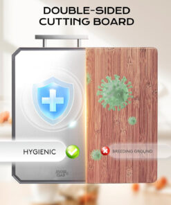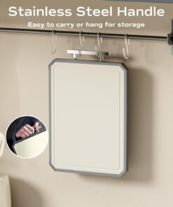 - 【SAFE AND EASIER TO HANDLE 】Unlike glass or titanium cutting board.equipped with a stainless steel handle. allows for a secure grip. ensuring that the cutting board doesn’t slip or move. Additionally. the handle provides a convenient way to hang and store the board.