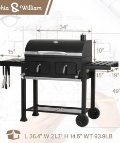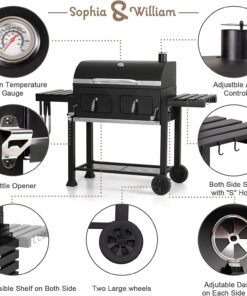 - 【Height-Adjustable Charcoal Tray with hole】sophia & william 34-inch charcoal grills features lifting handle on both left and right side. you can roll the handle to raise or lower the charcoal tray. So it’s an immediate increase of the implied temp without messing with the grill or fuel.