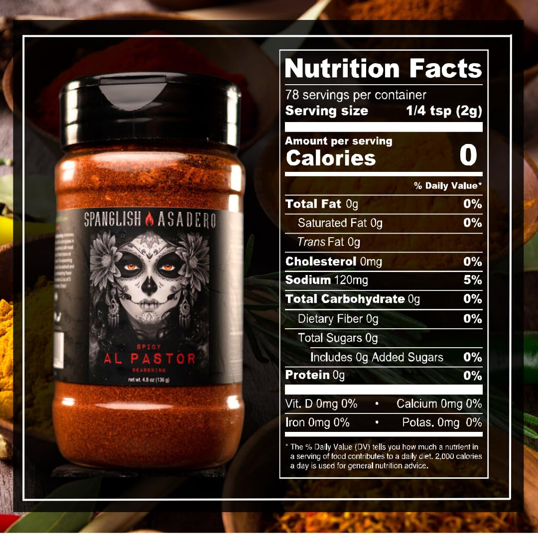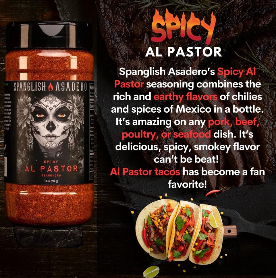 Spanglish Asadero 10Oz Spicy Al Pastor | Mexican Seasoning for Steak. Chicken. Pork. Lamb. and Elote | Low Sodium. Gluten-Free BBQ Rub for Smoking or Grilling