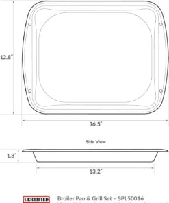 - USE IN OVENS AND OUTDOOR GRILLS — 2-piece black porcelain broiler pan and grill set: 16-1/2-Inch L x 12-3/4-Inch W x 1-3/4-Inch; replacement for flimsy or heavily soiled broiling/baking pans or for use in ovens that did not come with one