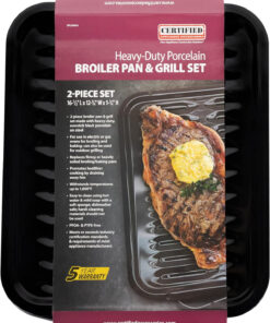 Heavy-Duty Porcelain Broiler Pan & Grill Set2-piece broiler pan & grill set made from heavy-duty. nonstick black porcelain on steel |