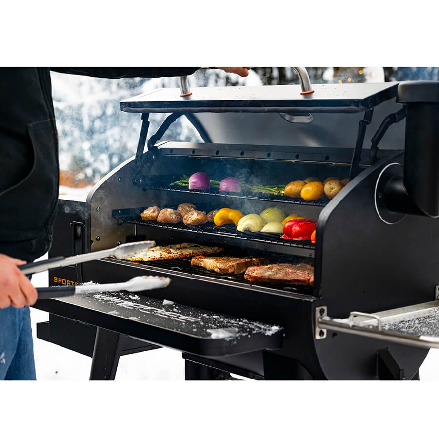 The Pit Boss® Grills Sportsman Series 1600 delivers a powerful grilling experience for the true outdoorsman. Perfect for those who value the field-to-grill lifestyle. the Sportsman Series gives you the tools necessary to craft mouthwatering flavor for searing fish. grilling game. smoking jerky. or whatever else your outdoor adventure brings you. With over 1.500 square inches of total cooking space. this grill is ideal for any cooking job – no matter the size.