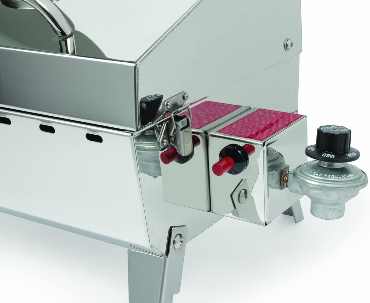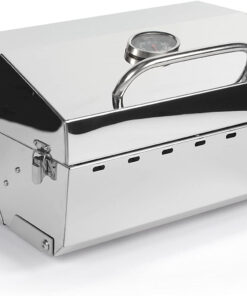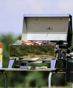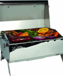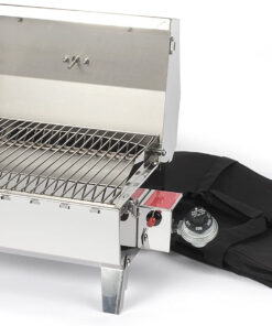 The Camco Premium Stainless-Steel Portable Propane Gas Grill is a compact grill that offers quality construction and convenient portability. Its compact size is perfect for when space is at a premium. It can be easily transported and can also be mounted to any Kuuma rail. rod. or pedestal mount. The grill has a cooking surface of 125 square inches and a heat output of 9.000 BTU/HR. It is compatible with 1 lb. throwaway propane cylinders. Constructed of 304 stainless-steel stainless steel. Weighs approximately 14.5 lb.