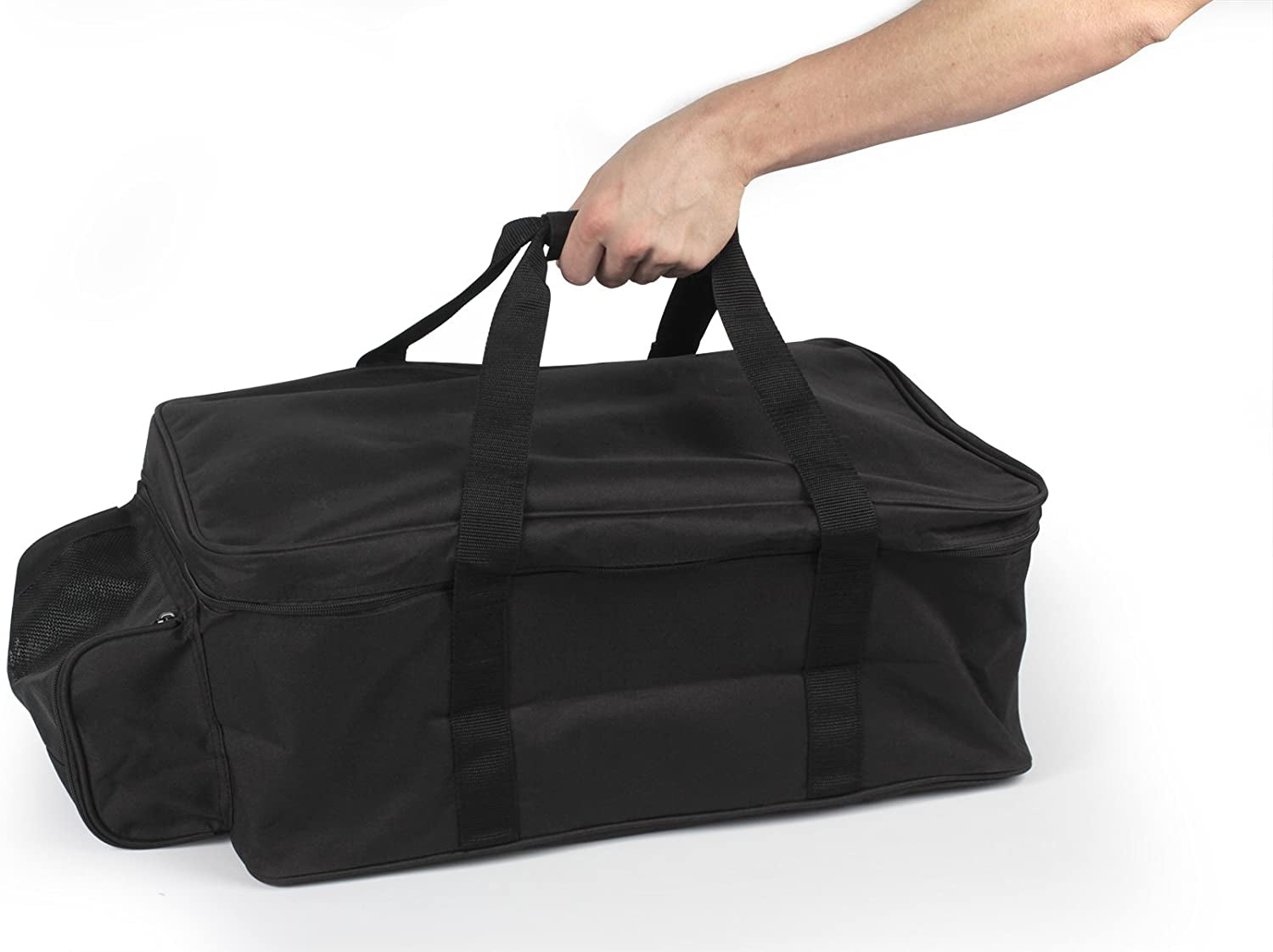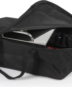 - Includes: A heavy duty weather-resistant polyester storage bag. push button igniter. and temperature gauge