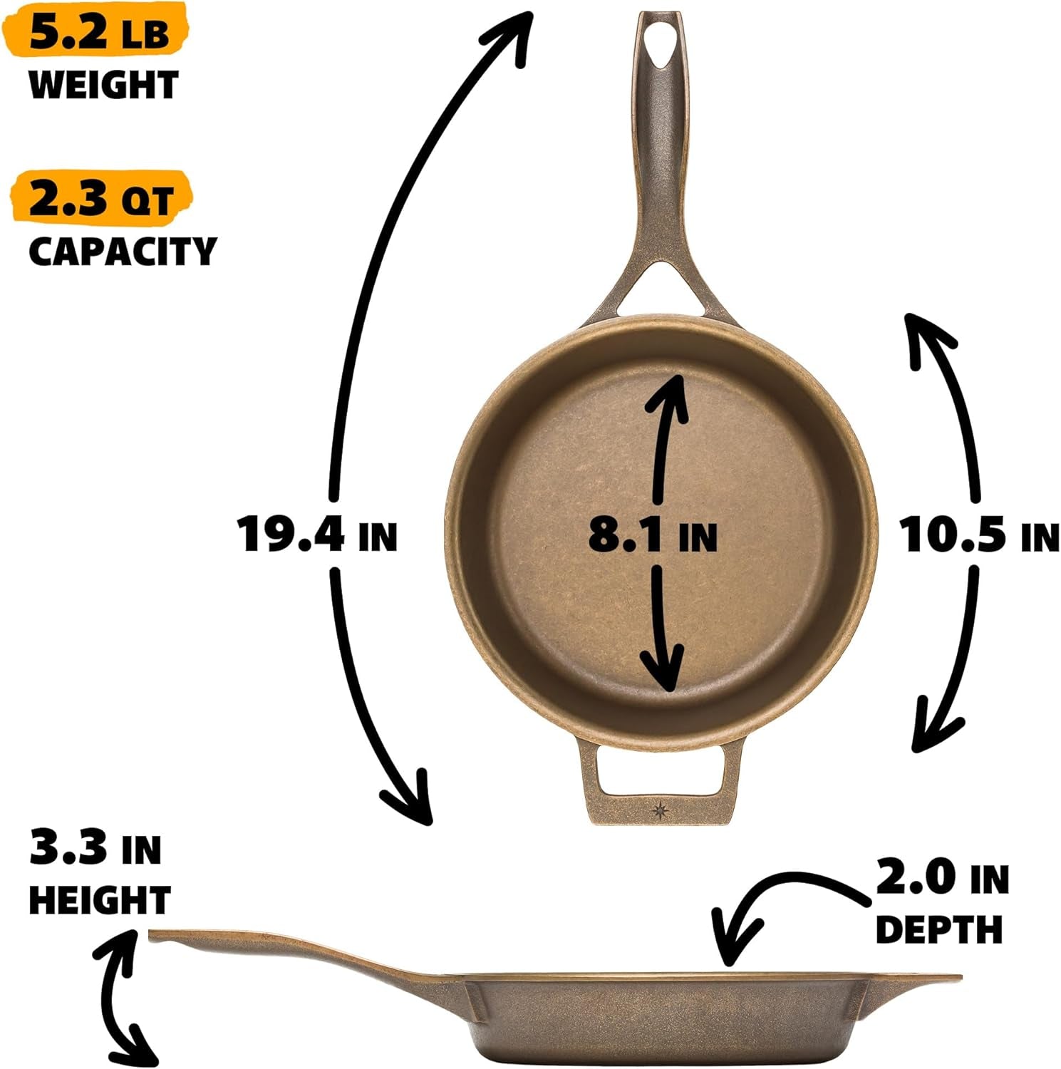 - HIGHLY ACCLAIMED: Our highly acclaimed. handmade cast iron cookware is built to last for generations. Crafted with no toxic chemicals or space-age materials. just pure iron. Renowned for our smooth surface finish and practical design. these skillets offer durability that stands the test of time.