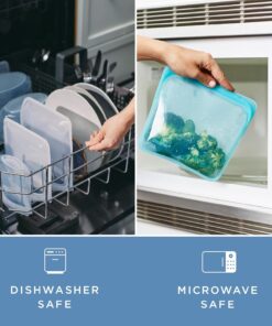 - REUSABLE. REWASHABLE CONTAINERS: Stasher silicone reusable storage bags make it easy to ditch single-use plastic and meet endless household needs. Safe for the dishwasher. microwave. oven (up to 425°F). and more.