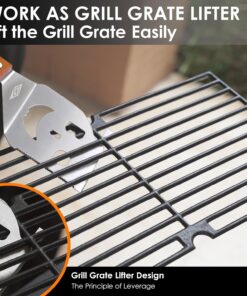 - GRILL TOOL FOR BBQ MASTERS. The personalized grill spatula with scraper has multiple functions of the barbecue tools set. spatula. turn the grilled sausage. grill knife. bottle opener. grill skewers auxiliary tool. BBQ scraper. grill grate lift. meat tenderizer……. very nice and sturdy. It will be your first choice for the Camping outdoor backyard barbecue tool