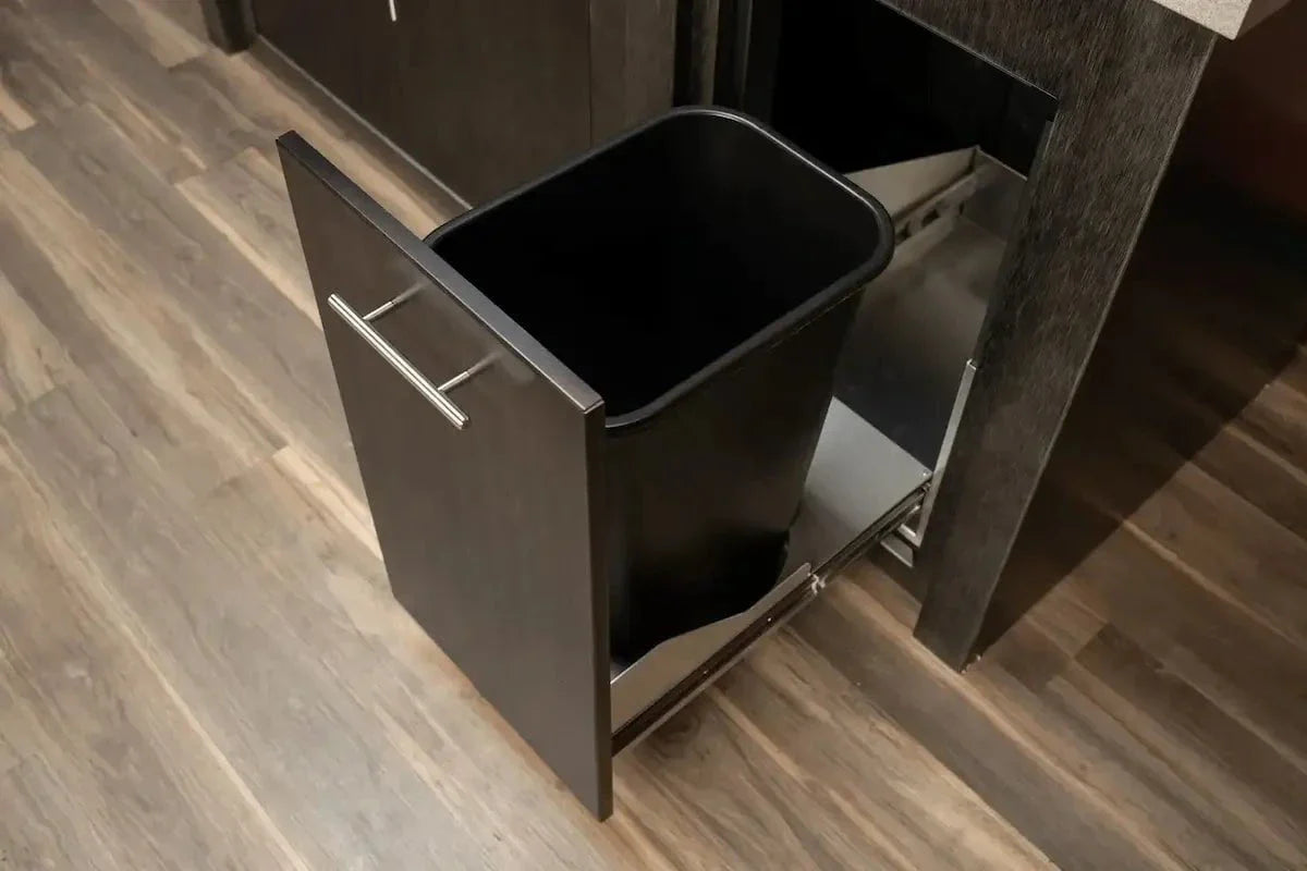 - Pullout Drawer: 26 H x 15 W. includes trash can space