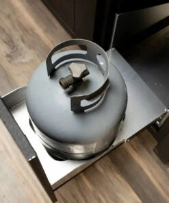 Designed for both style and function. this grill island features a spacious 29 x 30 countertop on the right side. perfect for meal prep or serving. Underneath. double doors with soft-close hinges open to reveal a generous 24 deep x 48 wide storage area. providing ample space for all your grilling essentials. A convenient pullout drawer with soft-close technology accommodates either a 20-pound LP tank or a trash can. keeping everything within easy reach and neatly organized.