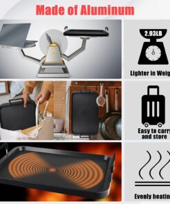 Stove Top Flat Griddle.2 Burner Griddle Grill Pan for Glass Stove Top Grill.Aluminum Pancake Griddle.Non-Stick Top Double Burner Griddle for Gas Grill. Camping/Indoor