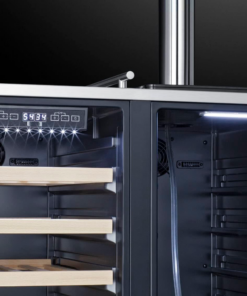 - Single compressor operation with two distinct temperature zones allows you to preserve and display wine on the left while tapping draft beer on the right
