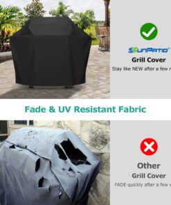SunPatio outdoor grill covers are made of durable yarn-dyed solution fabric with high anti-UV rating. provide better color fastness to sunlight. resist to fading. tearing and ripping. will not fade or rip easily like others. protect your BBQ grills from sun damage. rain. snow. dust. and debris.