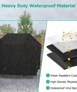 - FadeStop and Waterproof Material – Made of high performance UV resistant and FadeStop Polyester fabric with waterproof vinyl lining. resists to fading. tearing and cold cracking. so your grill will be protected from sun damage. rain. snow. dust and debris all year round.