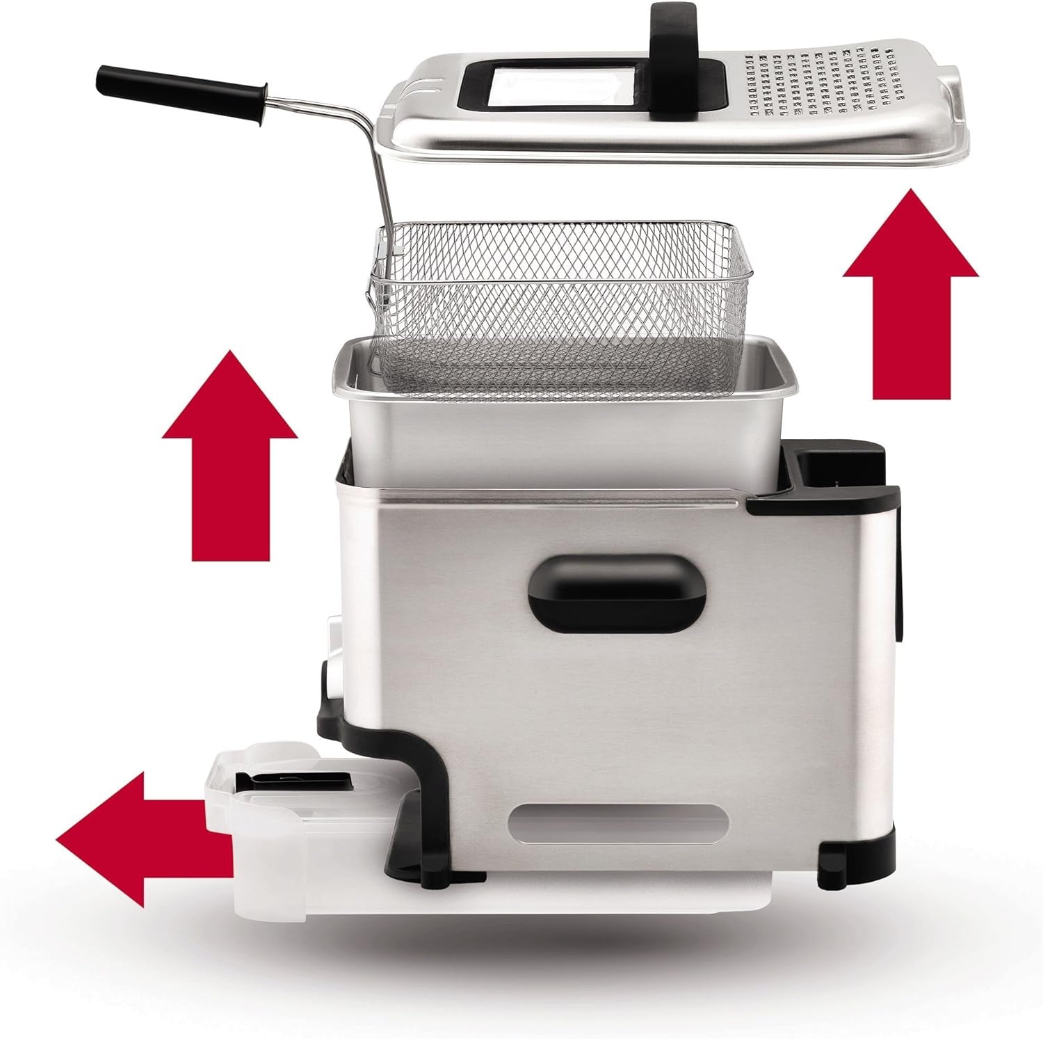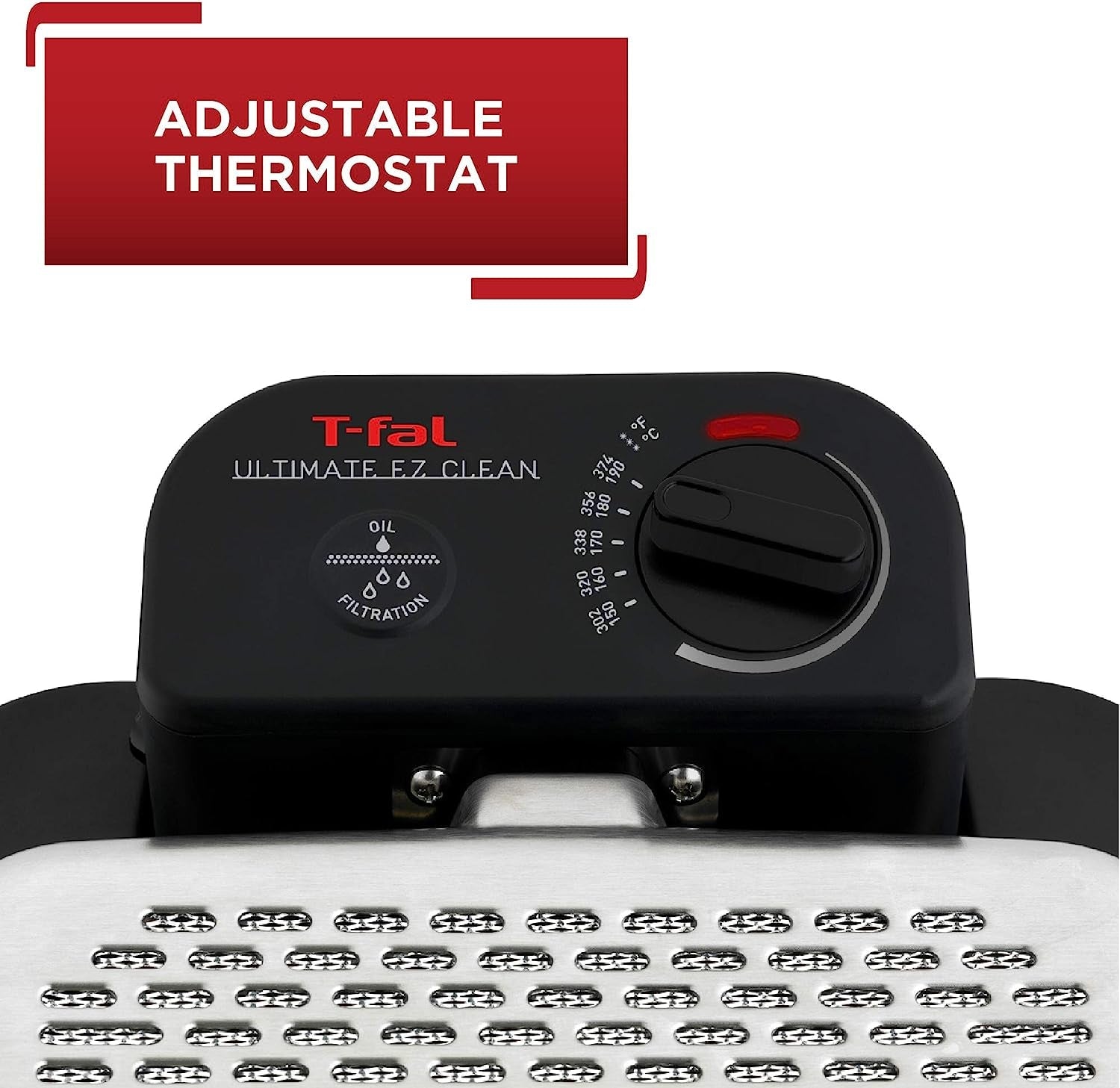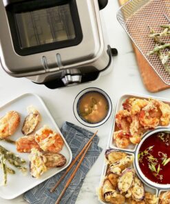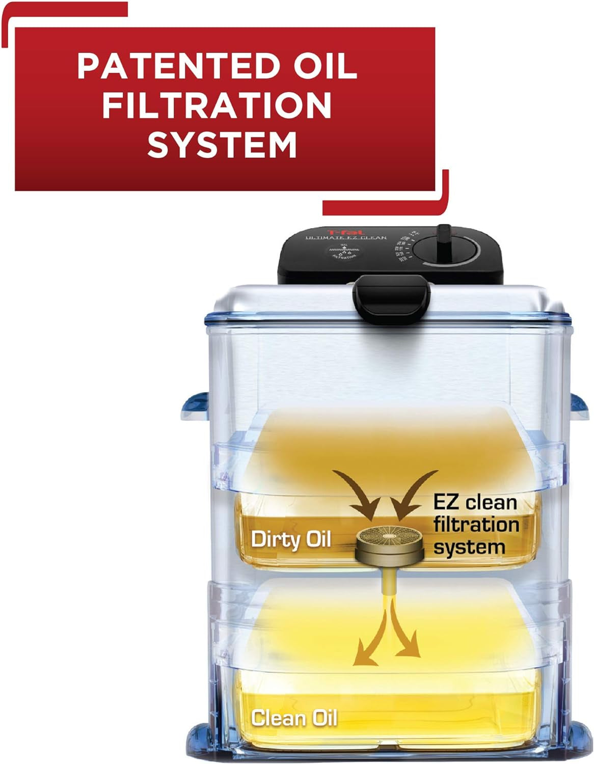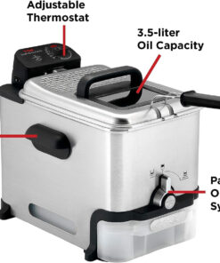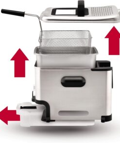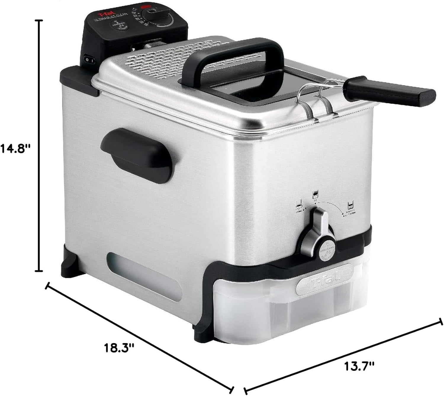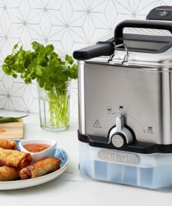 Elevate your home cooking with the T-fal 3.5L Stainless Steel Deep Fryer. bringing restaurant-quality fried foods to your kitchen. This innovative appliance combines advanced technology with user-friendly features. perfect for culinary enthusiasts. The heart of this fryer is its state-of-the-art oil filtration system. This patented technology automatically filters and stores oil in a sealed container after each use. ensuring easy cleanup and cost savings through oil reusability. With a generous 3.5-liter oil capacity and ability to handle up to 2.65 pounds of food. this fryer is ideal for family dinners or entertaining guests. Whether you’re making crispy french fries. golden onion rings. or perfectly battered fish. this fryer delivers. Precision cooking is achieved through the adjustable thermostat. with temperature control ranging from 300F to 375F. The powerful 1700-watt heating element ensures quick oil recovery time. resulting in evenly cooked food with a crispy exterior and tender interior. Safety features include a secure locking lid to prevent oil splatter. a large viewing window for easy monitoring. cool-touch handles for safe handling. and an automatic shut-off function for peace of mind. Cleanup is effortless with dishwasher-safe components. including the removable cooking basket. bowl. lid. and oil box. The sleek stainless steel exterior not only looks great but ensures durability and longevity. For best results. we recommend using unsaturated vegetable oil. This type of oil produces excellent frying results and aligns with healthier cooking practices. Whether you’re a seasoned chef or a cooking novice. the T-fal deep fryer simplifies the art of deep frying. Its combination of advanced features. safety measures. and easy maintenance makes it invaluable for creating delicious. crispy treats at home.
