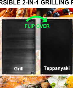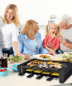 - Versatile Raclette Grill: 2 in 1 die-cast aluminum cooking surface with small size of 14.2*8.8 inches. seamlessly transition between griddle and grill with the reversible cooking plate.suitable for crafting a range of dishes from morning to night. Prepare delectable crepes. pancakes. eggs. or achieve beautiful grill marks on your favorite meats. seafood and veggies. Also with 8 pcs raclette trays and spatulas. can cater to gatherings of up to 8 people. whether it’s a family dinner or a lively event