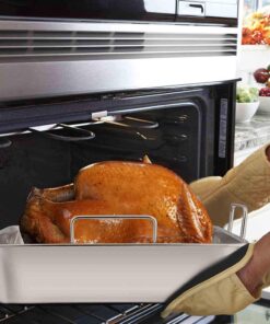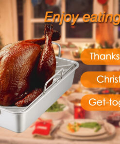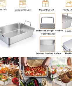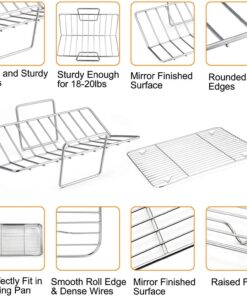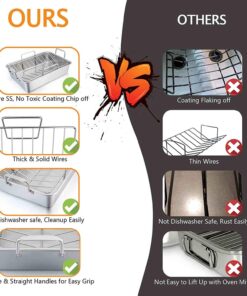Teamfar Roasting Pan. 15 Inch Large Turkey Roaster Lasagna Pan with V Rack & Cooling Rack Set Stainless Steel for Thanksgiving Christmas. Healthy & Heavy Duty. Deep Side & Dishwasher Safe – 3 PCS