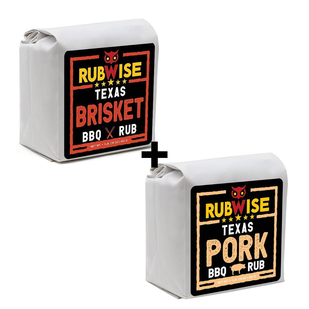 Elevate your BBQ and grilling game with this flavorful bundle containing two 1lb bags of premium dry rubs. The Texas Style Brisket Rub & Pork Rub by Rubwise. Our Brisket Rub is a Championship Cook-off winning signature blend a recipe that is a time-tested classic! And Get that sweet and savory combo with our Pork rub. This rub has a rich and full flavor with no heat. a balance of brown and white sugars and other spices that slowly caramelize during the cook. All seasonings are manufactured and packed daily on-site at our facility in Texas using the highest quality of ingredients to guarantee freshness and quality you can trust.