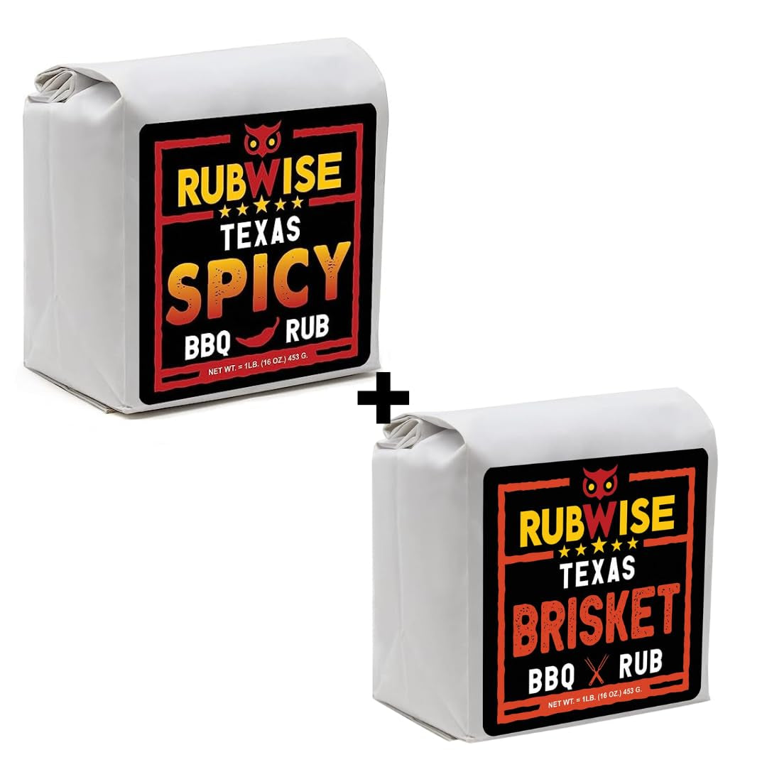 Step up your BBQ and grilling experience with this flavorful package that includes two 1lb bags of premium dry rubs. The Texas Style Brisket Rub & Spicy Rub by Rubwise. Our Brisket Rub is a Championship Cook-off winning signature blend a recipe that is a time-tested classic! While the Spicy BBQ Seasoning Rub is quickly becoming one of our more popular blends. the seasoning has a kick of red pepper that’s not overly spicy so that your dishes have a distinctive fiery flavor without being too overpowering.