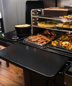 Maximize the functionality of your grill with the Folding Front Shelf for P.A.L.-compatible Traeger wood pellet grills. This detachable front shelf easily attaches to the P.A.L. Pop-And-Lock accessory rail. providing you with extra space for prepping. resting meat. and more. When not in use. the shelf folds down for easy storage. and the side handles offer added convenience. Compatible with most grills featuring the P.A.L. Pop-And-Lock Accessory Rail. this versatile shelf allows you to customize your cookspace with various attachments. such as tool hooks and storage bins. to suit your grilling style.