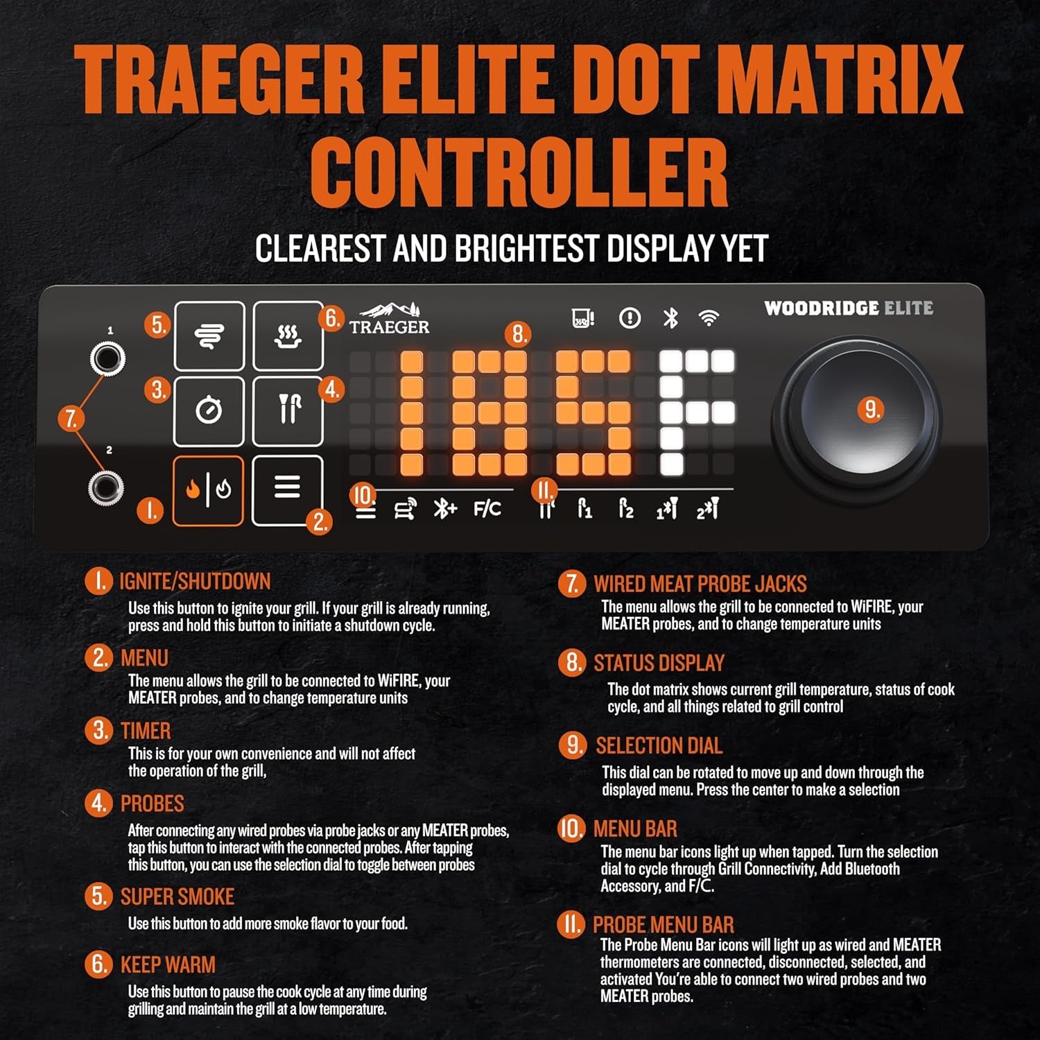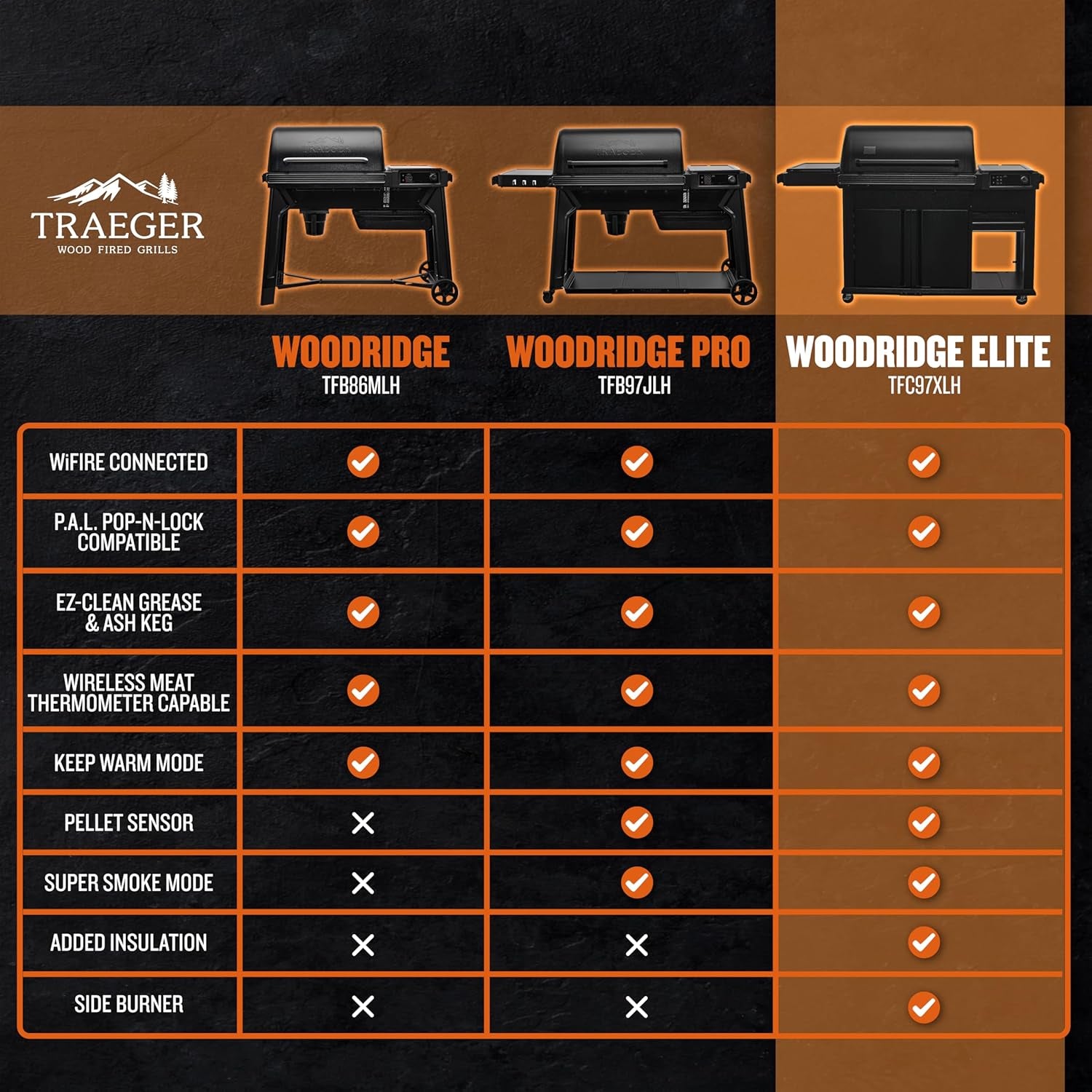 - Premium Wood-Fired flavor: Infuse elite wood-fired taste into brisket. burgers. pizza. and more with the Traeger Woodridge Elite wood pellet grill. built for serious grillers who want superior performance and versatile outdoor cooking.