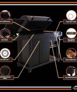 - Smart Features and Monitoring: WiFIRE technology. digital pellet sensor. Bluetooth meat thermometer compatibility. and Keep Warm Mode help you control your outdoor smoker grill from anywhere using the Traeger app.