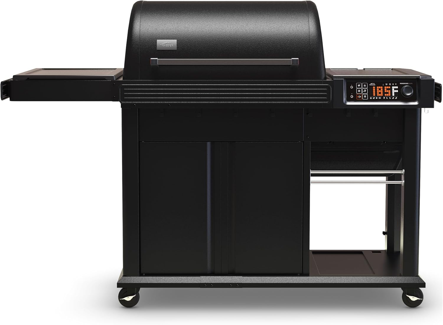 - Side Sear Station: Unlock high-heat searing with the built-in side burner on the Traeger Woodridge Elite pellet smoker grill. perfect for scorching steaks. sautéing vegetables. simmering sauces. and expanding your outdoor cooking options.