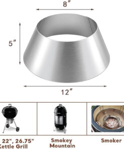 - 【Fits 22 Charcoal Grills】 Perfectly fits Weber 22 in. for Weber Kettle 22. for Weber Smokey Mountain (XL). Kamado Joe Big Joe. Big Green Egg. CharGriller Junior Kamado. for Weber Summit E6/S6. Performer Deluxe Charcoal. and other 22-inch & larger BBQ kettle charcoal grills. Please check dimensions before purchasing. 【Perfect Dimensions】 -Bottom Diameter: 11.97 -Top Diameter: 8.1 -Height: 4.72 – Thickness: 19GA (0.04)