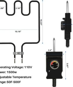 Universal Electric Smoker and Grill Heating Element Replacement Part with Adjustable Thermostat Cord Controlle for Masterbuilt Smokers & Turkey Fryers 1500 Watts
