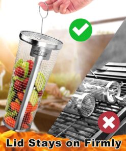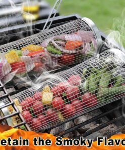 - 【Easy Grilling Way】With this rolling grill basket. you don’t need to stand by the grill and flip each piece of food constantly. Only a rolling with a fork. all food can be evenly cooked. You can experience the ultimate ease and efficiency with our cylinder grill basket.