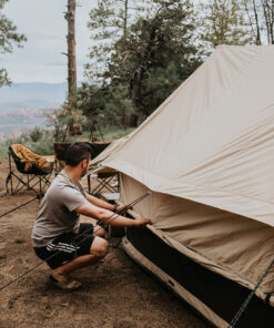 The Rover makes camping a comfortable. easy. and fun experience for everyone with its lighter weight. quick setup. usable space and summer-friendly options to roll back all doors and windows.