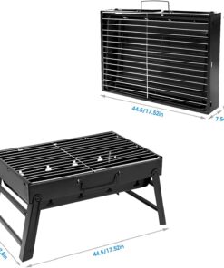 - 【Easy to Use & Clean】: Only need 4 operationrotate .Rotate the legs of the grill .Put in the charcoal mesh.Add the charcoal. Install BBQ wire mesh. Then you can start the delicious barbecue grilling. With high-quality carbon grooves. The grilling rack is removable and easy to clean.