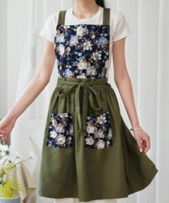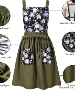 Vintage Pinafore Apron Dress for Women with Pockets Cute Floral Chef Aprons for Kitchen Cooking Baking Gardening