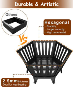 Waaliji 22.5 Inch Portable Plug Fire Pit for Camping. Detachable Outdoor Wood Burning Firepit with Carrying Bag for outside Patio Heating. Picnic. Bonfire and BBQ