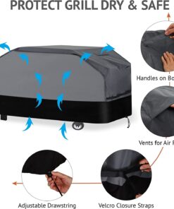 - 【DETAILS FOR CONVENIENCE】- Velcro closure straps at two sides and adjustable drawstring at bottom prevent your cover from blowing off and keep it secure on the grill; Handles on both sides for easy hanging and storage