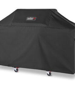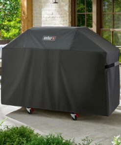 Keep your grill looking great with this premium heavy-duty grill cover. Made from durable polyester fabric. it is water and UV resistant. protecting your grill from the elements. The breathable design helps prevent moisture buildup. and the lightweight construction makes covering and uncovering easy. This cover is compatible with Weber GENESIS 300 series grills and comes with fastening straps to keep it securely in place. even during harsh conditions.
