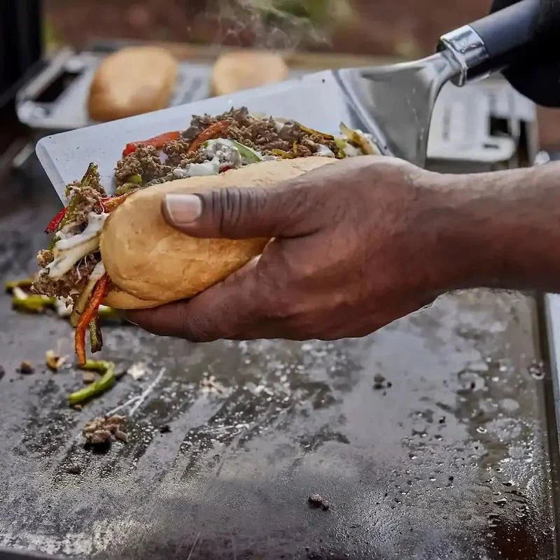 From the no-slip. easy grip handle to the beveled edge that easily slides under food from any direction. the Weber Griddle Spatula helps you maneuver your cooking with comfort and ease. Designed for practicality and convenience. the spatula’s handle is elevated. ensuring it doesn’t rest on messy side surfaces. keeping your cooking area clean and efficient.